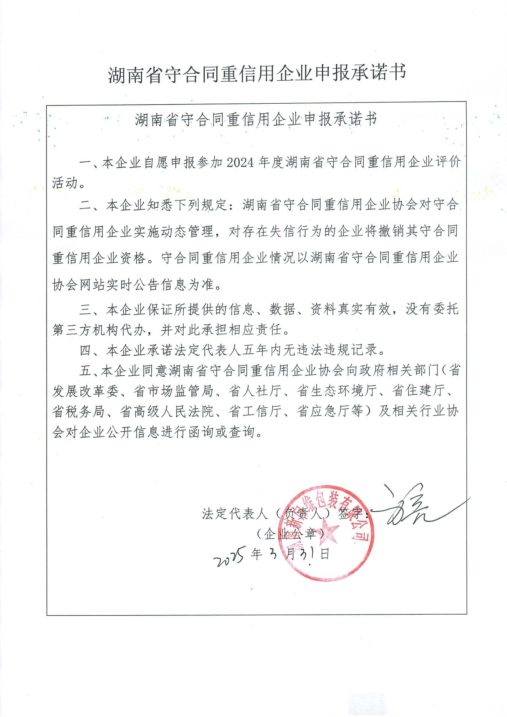 本企業(yè)根據(jù)《湘潭市守合同重信用企業(yè)申報規(guī)定》等編制 2024 年度企業(yè)信用報告書,并保證本報告書內(nèi)容真實、準(zhǔn)確、完整。