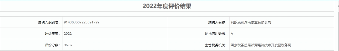 4.【利歐集團(tuán)湖南泵業(yè)】納稅信用評級(jí)(2022年度評價(jià)結(jié)果A等級(jí)).jpg