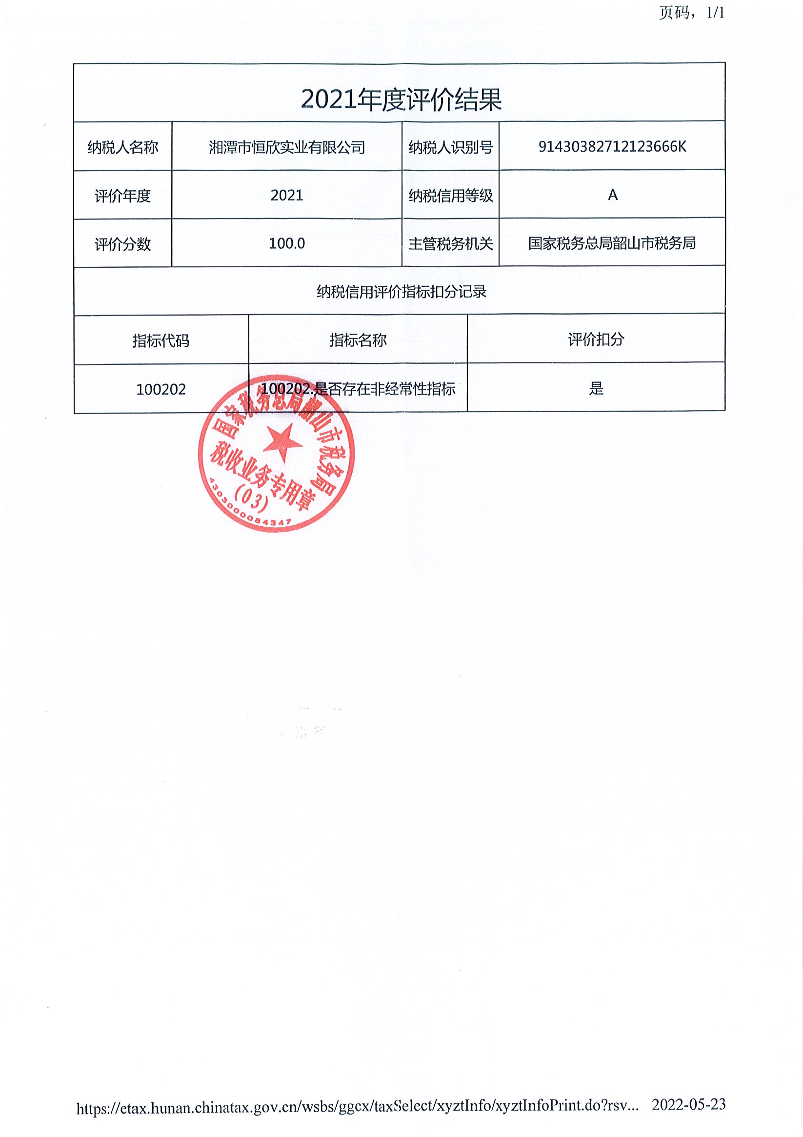 企業(yè)納稅信用等級(jí)報(bào)告: